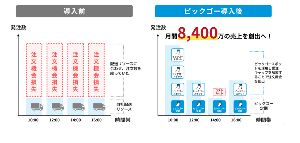 ピックゴーの定期配送を使うことで、追加の車両購入やドライバー採用を行う必要がなくなった。