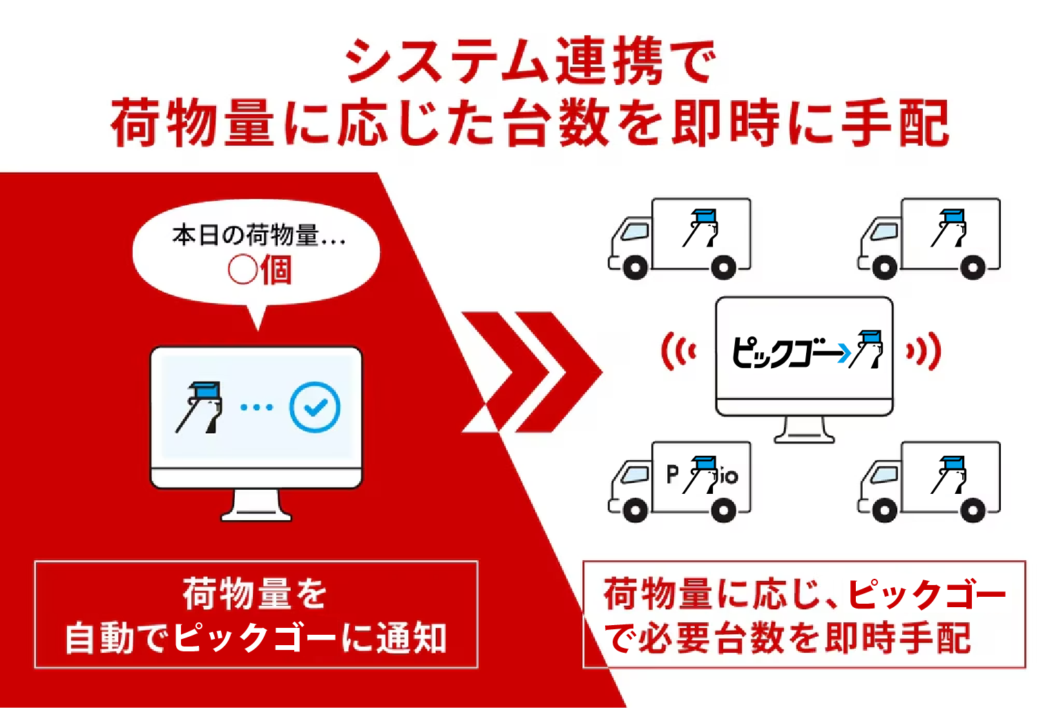 システム連携により当日の荷物量に応じた車両台数を手配