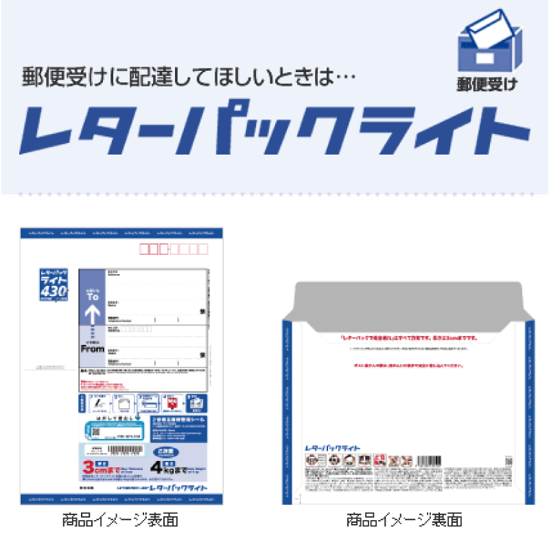 A4サイズかつ重さが4kg以内の郵便物を送付できます。専用封筒は、郵便局の窓口やコンビニで購入可能です。