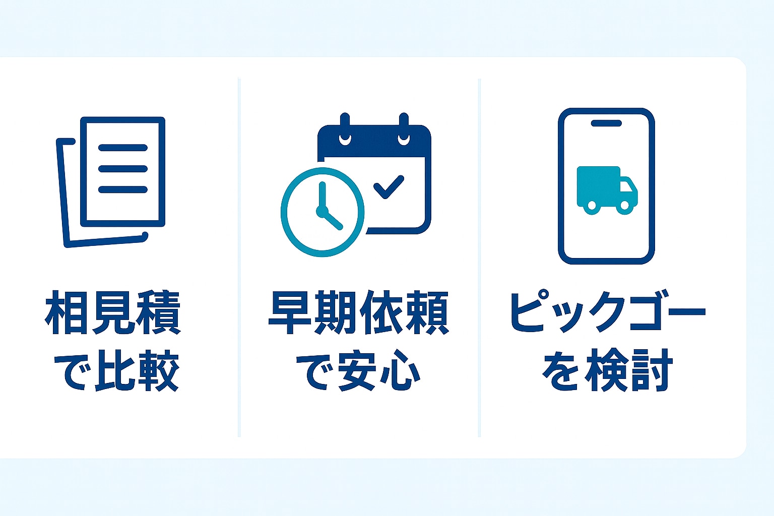 引っ越しの際の配送方法や料金相場などに関して、理解できたのではないでしょうか。ここでは、引っ越しの配送を依頼する配送サービスを選ぶ際の、下記の3つのポイントを紹介します。知っておくことでお得になることもあるので、参考にしてください。
