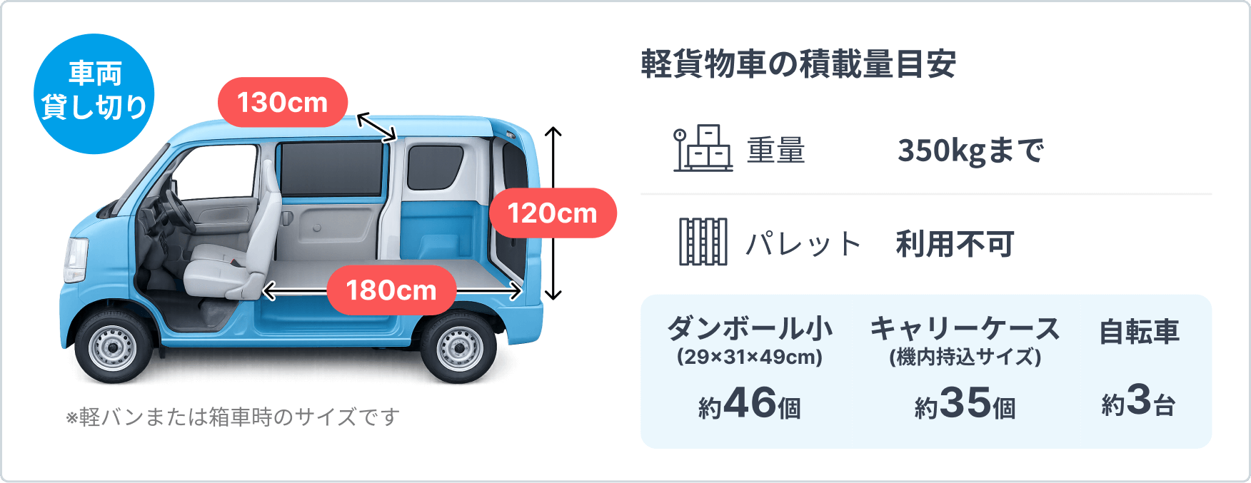 ピックゴーなら軽バン/軽トラックで最大350kgまで対応