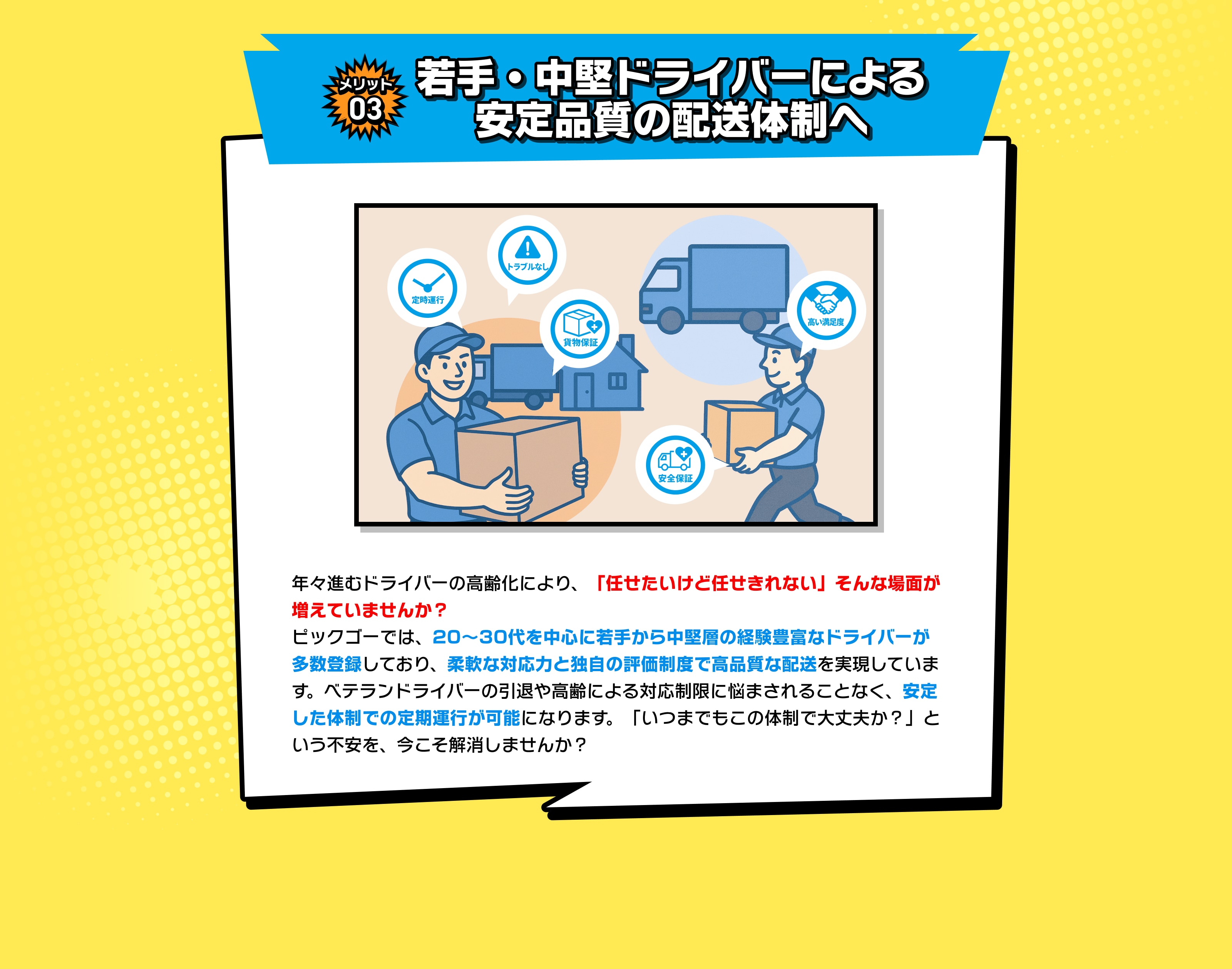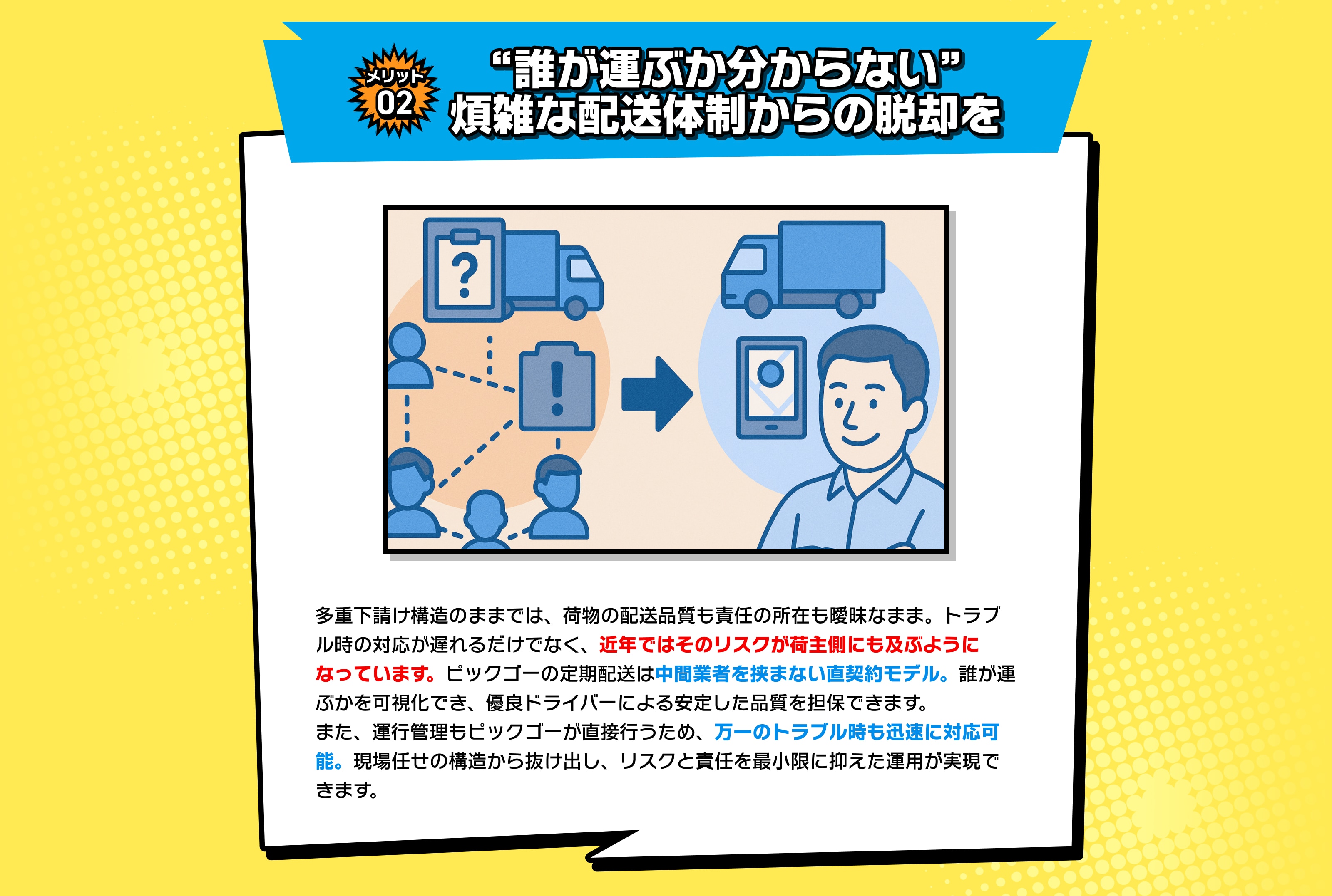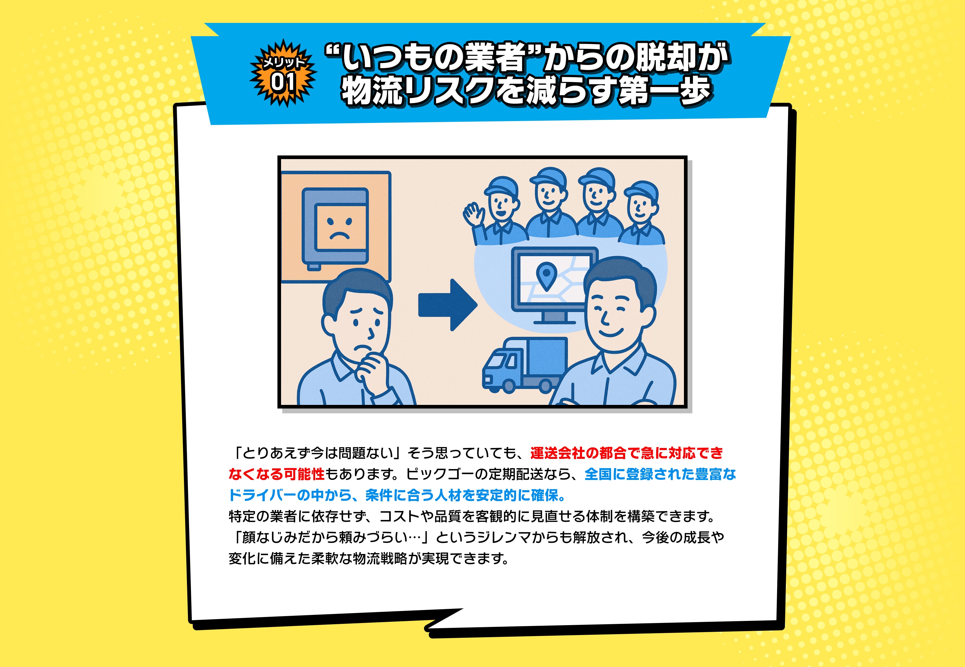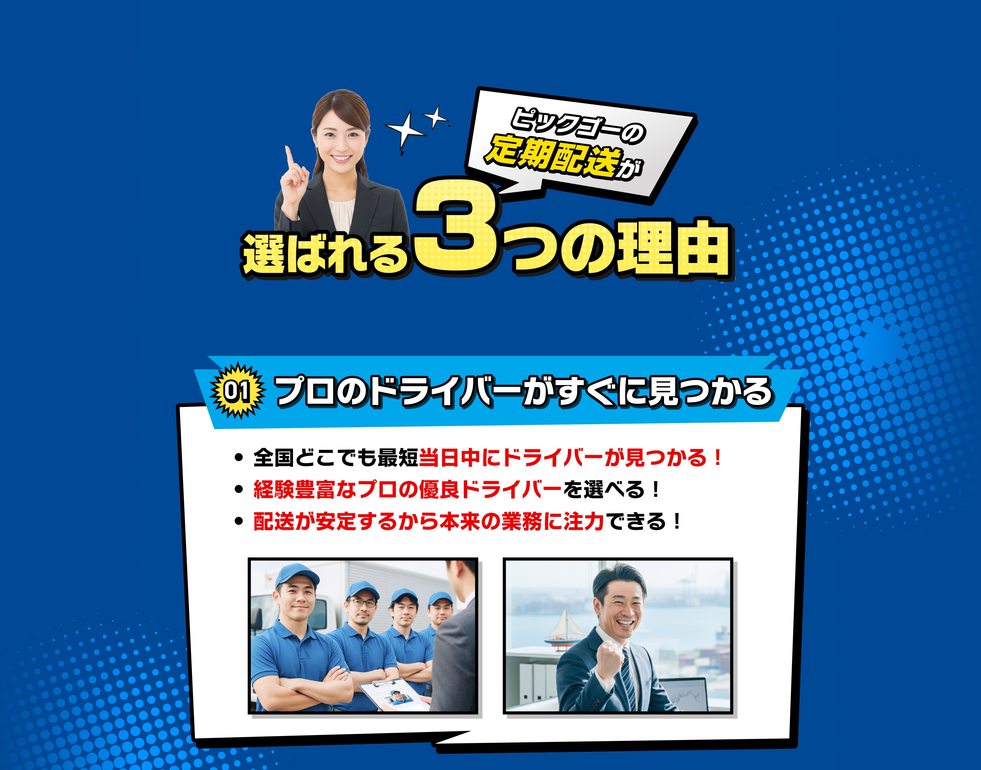 できます。定期便のお問い合わせをいただいた後、内容の詳細をお伺いし、弊社から担当ドライバーへ指示いたします。